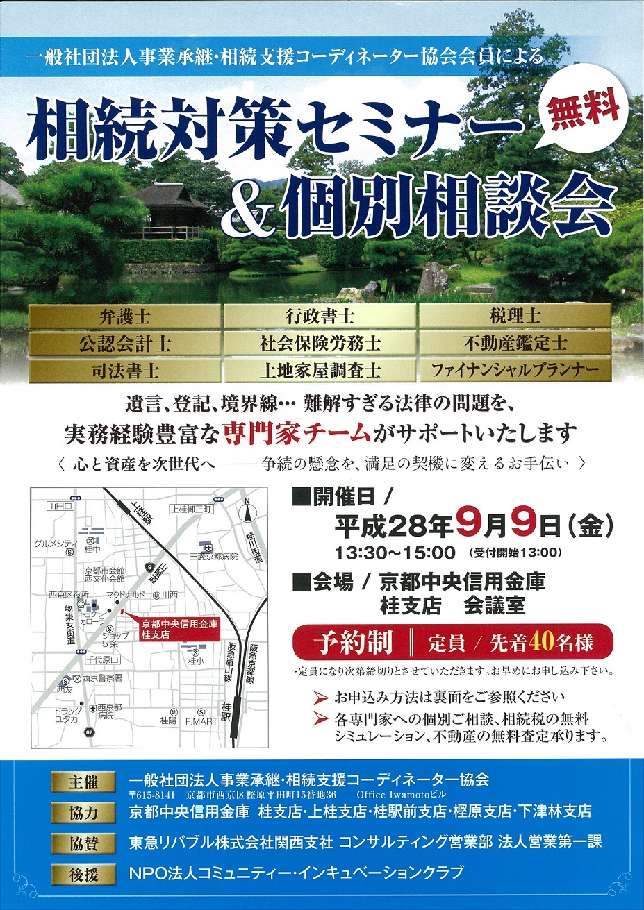 京都で事業承継・相続でお困りの方はJSコーディネーター協会へお気軽にご相談ください